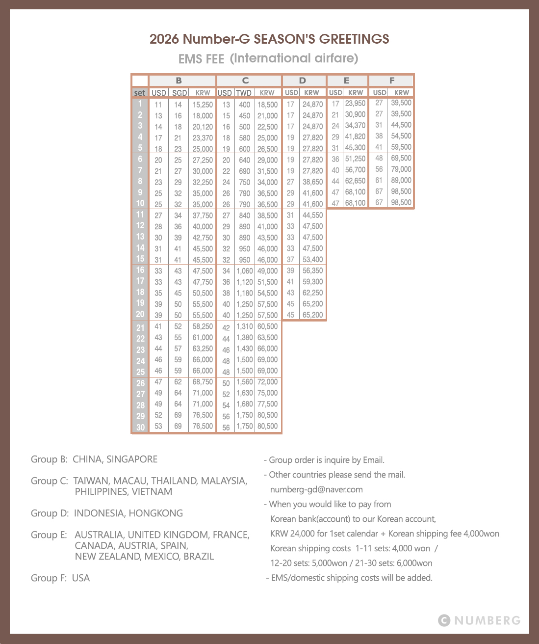 KRW 24,000 for 1set calendar + Korean shipping fee 4,000